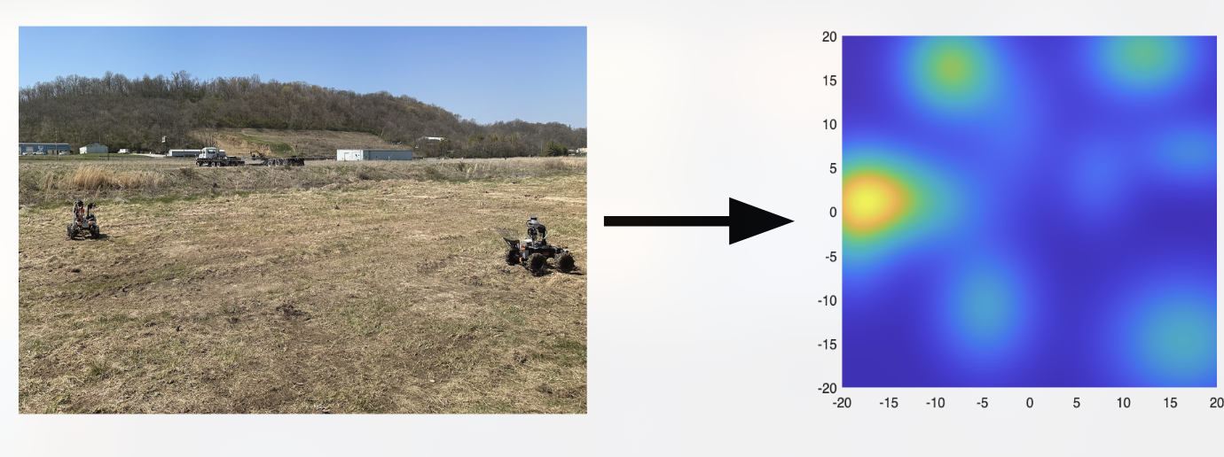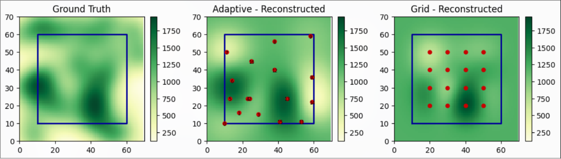 algorithm uses Gaussian Processes to model the contaminant distribution. The next location to sample is selected based on a reward function: